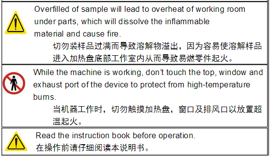 - 易燃材料或者低沸點(diǎn)材料 - 樣品過(guò)滿(mǎn) - 不安全的容器